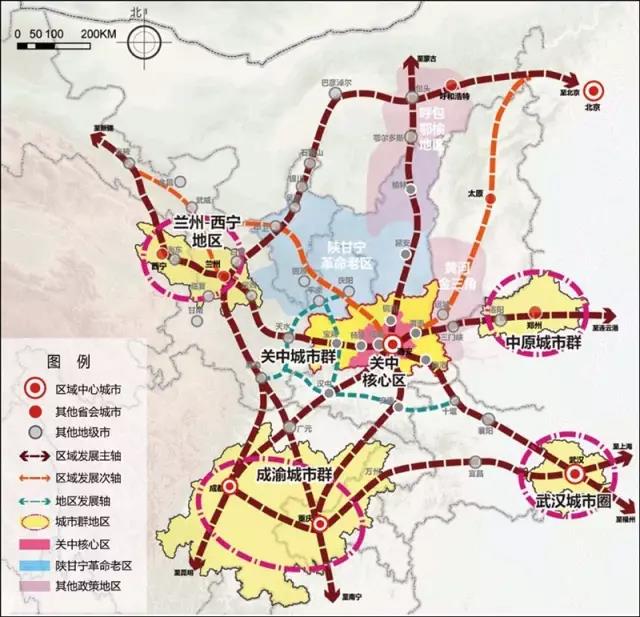 1、构筑枢纽城市,推进大关中基础设施一体化