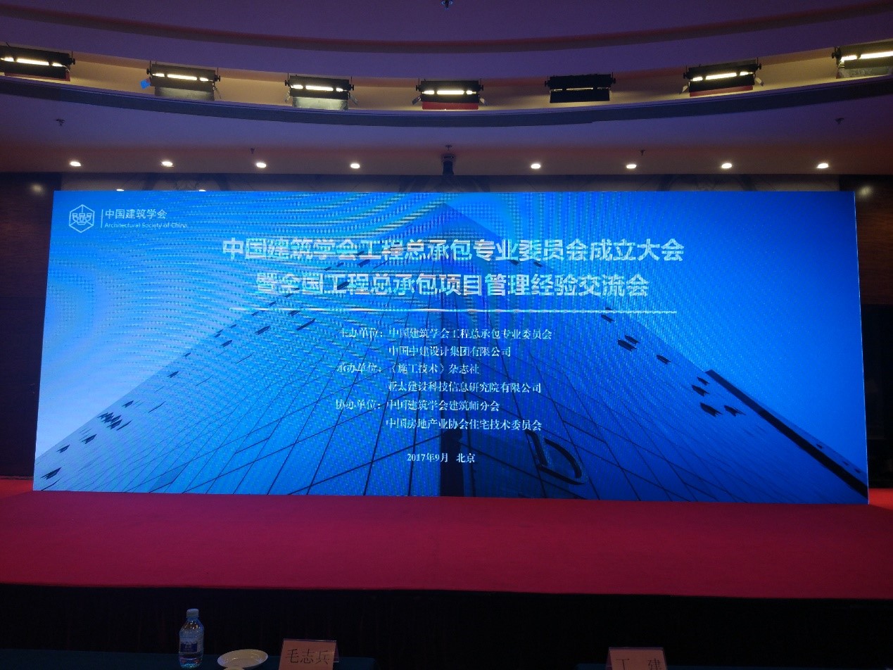 2017年9月22日至23日,全国工程总承包项目管理经验交流会暨中国建筑学会工程总承包专业委员会成立大会在北京举办,本次会议由中国建筑学会工程总承包专业委员会、中国中建设计集团有限公司主办,《施工技术》杂志社、亚太建设科技信息研究院有限公司承办,中国建筑学会建筑师分会、中国房地产业协会住宅技术委员会支持,共有来自全国各地200多位代表出席了会议。课题组成员高华、袁荣丽参加了本次大会。