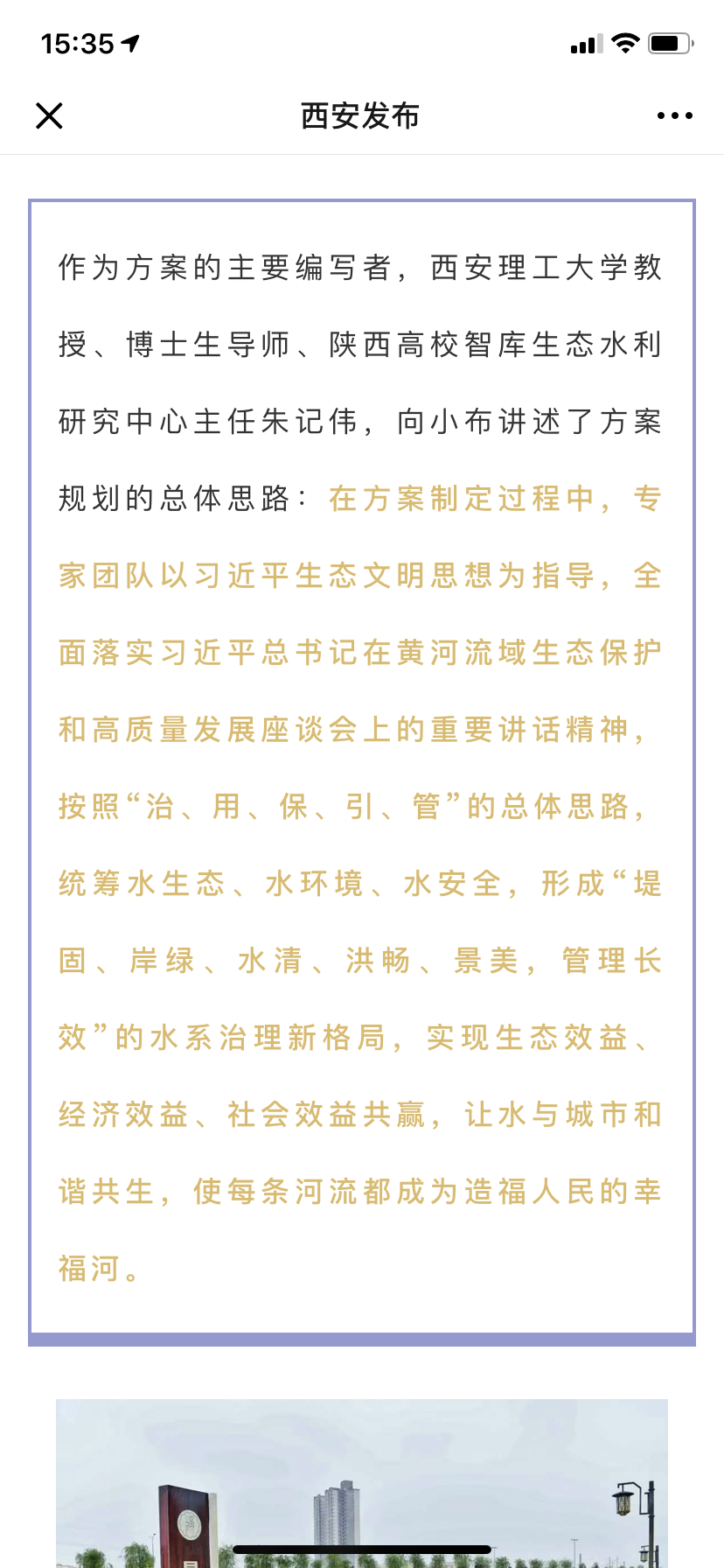 政务新媒体《西安发布》记者采访了作为方案的主要编写者,西安理工大学教授、博士生导师、陕西高校智库生态水利研究中心主任朱记伟,并在12月18日以“权威发布!西安吹响全域治水冲锋号,这份三年行动方案请查收……”在微信、微博“西安发布”发布。