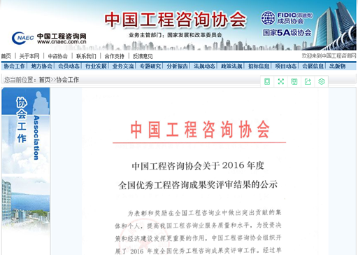 智库一项成果获2016年度全国优秀工程咨询成果奖二等奖