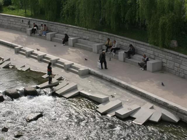 项目开始遇到了多重阻力,但值得注意的是首尔市民在对待清溪川改造复兴项目上态度的转变,根据首尔市政府2005年的市民调查,已有74.6%的市民对清溪川表达了喜爱和支持。笔者的一位韩国朋友也曾因为上述原因并不赞成清溪川改造项目的实施,但是后来清溪川作为一个如此受市民喜爱的市中心的公共空间,改变了他最初的想法。