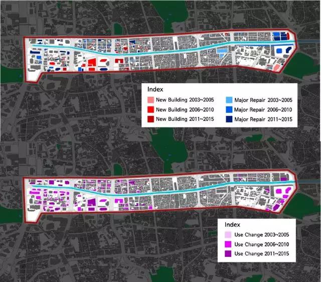 (第三部分编译自Chehyun Ryu 和 Youngsang Kwon 于2016年发表的文章,题目为“大型项目如何加强城市发展的可持续性? 首尔清溪川复兴改造项目后的空间变化研究”)