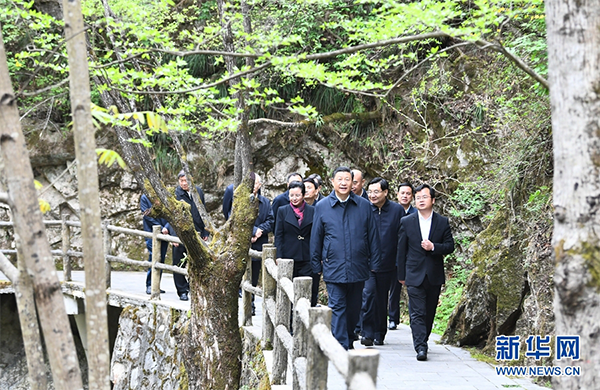 在位于秦岭山脉东段的牛背梁国家级自然保护区羚牛谷,了解秦岭生态环境保护情况。强调要坚持不懈开展退耕还林还草,推进荒漠化、水土流失综合治理,推动黄河流域从过度干预、过度利用向自然修复、休养生息转变,改善流域生态环境质量。