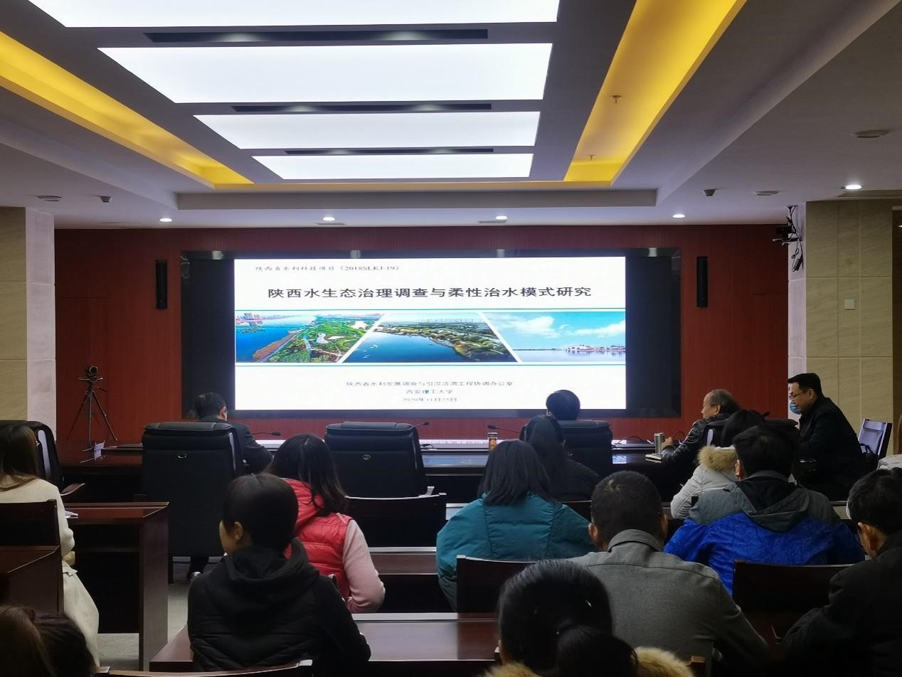 2020年11月25日,《陕西水生态治理调查与柔性治水模式研究》专题讲座在陕西省水利发展调查与引汉济渭工程协调中心会议室举行。陕西省水利发展调查与引汉济渭工程协调中心副主任赵利亨、渭河生态区保护中心副主任曹祎、陕西省水利发展调查与引汉济渭工程协调中心教授级高级工程师严伏朝等出席报告会,西安理工大学朱记伟教授作专题讲座。