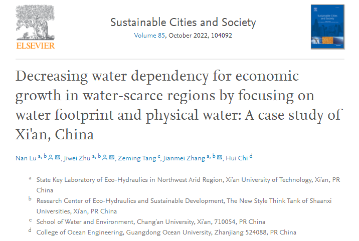 摘要:中心研究成果《Decreasing water dependency for economic growth in water-scarce regions by focusing on water footprint and physical water: A case study of Xi'an, China》在国际知名期刊《sustainable cities and society》(中科院一区TOP期刊,影响因子10.696)上发表。文章构建了“水资源可持续评价—脱钩状态分析—驱动因素分解—政策建议”的研究框架,结合水足迹、遥感技术与LMDI分解方法,分析了西安市2009至2019年间水资源的可持续利用状态以及实体水和水足迹与经济的脱钩情况,确定了影响脱钩的驱动因素的驱动作用,为西安市减少经济发展对实体水和虚拟水的依赖,实现经济的可持续发展提供指导。